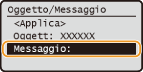 Selezionare <Oggetto/Messaggio>, quindi premere