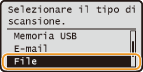 Le destinazioni disponibili per i file server sono limitate alle destinazioni registrate nella Rubrica. Se non vi sono destinazioni registrate, registrare destinazioni nella Rubrica prima di eseguire la scansione su file server.
