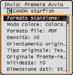 Se è visualizzato <Invio a me stesso>, è possibile selezionare questa voce e inviare un file alla cartella assegnata all'utente. Per ulteriori informazioni sulle impostazioni per l'invio dei file a cartelle specifiche, vedere