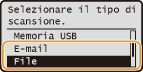 per selezionare <E-mail> o <File>, quindi premere
