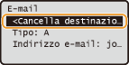 Se si desidera eliminare le destinazioni in modo semplice e rapido senza visualizzare un elenco di destinazioniPrima di selezionare <Conferma/Modifica destinazione> al passo 1, è possibile premere