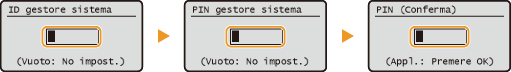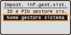 Se si tenta di accedere a <Impostazioni rete> o a <Impostazioni gestione sistema> quando l'ID gestore sistema è attivato, viene visualizzata la schermata seguente:
