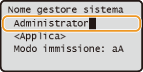 Immettere fino a 32 caratteri per il Nome gestore sistema, selezionare <Applica>, quindi premere  . Immissione di testo
