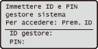 Specificare <ID gestore sistema>, quindi specificare <PIN gestore sistema>.