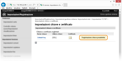 Fare clic su [Registrazione chiave predefinita] a destra della coppia di chiavi che si desidera utilizzare.