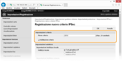 Nella casella di testo [Nome criterio] immettere fino a 24 caratteri alfanumerici per un nome utilizzato per l'identificazione del criterio.