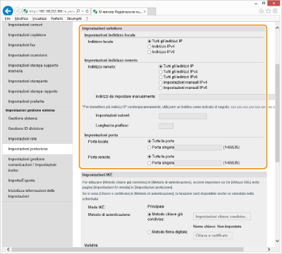 [Impostazioni IPSec].