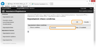 Immettere fino a 24 caratteri alfanumerici per la chiave già condivisa e fare clic su [OK].