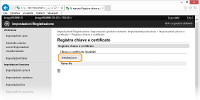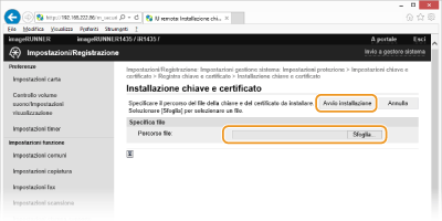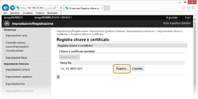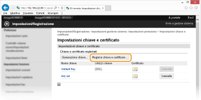 Fare clic su [Registra chiave e certificato] o [Registra certificato CA].