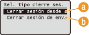 para cambiar a otra función distinta a la que está utilizando, aparecerá la siguiente pantalla de confirmación de cierre de sesión. Para cerrar sesión en Envío autorizado (función de fax o escaneado), utilice / para seleccionar <Sí>, y pulse .![]() |