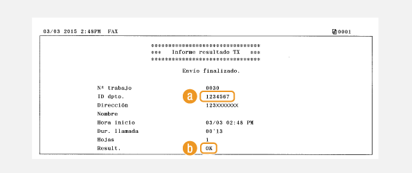 Informe resultado TX de fax (sólo imageRUNNER 1435iF)