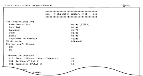 Puede consultar la lista de elementos de configuración (Lista del menú de configuración) y las opciones actuales registradas en el equipo, como el tamaño y el tipo de papel. También puede consultar la información de configuración de <Opciones de red> y <Opciones de gestión del sistema> no incluida en la Lista datos de usuario (Lista datos de usuario).