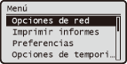 Todas las opciones sobre la red se muestran con descripciones breves. Las opciones predeterminadas aparecen marcadas con una cruz (