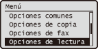 Todas las opciones sobre el escaneado se muestran con descripciones breves. Las opciones predeterminadas aparecen marcadas con una cruz (