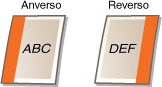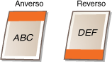 Puede especificar esta opción junto con <Desplazar lado largo (anverso)>, <Desplazar lado corto (reverso)> y <Desplazar lado largo (reverso)>. Si especifica las cuatro opciones, por ejemplo, la posición de impresión cambiará tal y como se indica en la siguiente ilustración.