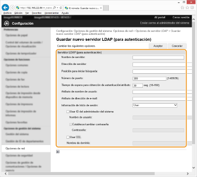 Haga clic en [Guardar nuevo servidor...] en [Servidor LDAP (para autenticación)].