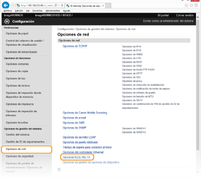 Seleccione la casilla de verificación [Usar IEEE 802.1X], introduzca el nombre de inicio de sesión en el cuadro de texto [Nombre de inicio sesión:] y especifique las opciones necesarias.