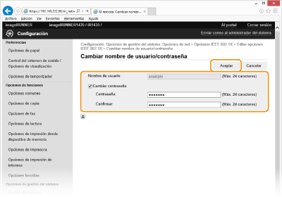 Configure el nombre de usuario/la contraseña y haga clic en [Aceptar].