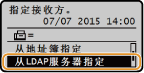 如果您的办公室已经安装了 LDAP 服务器,则可以使用服务器中已注册的接收方。若要指定接收方,请通过本机访问 LDAP 服务器,然后检索接收方。
