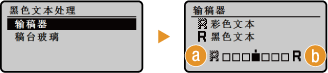 扫描彩色文档时,可以调整黑色或带黑色文本的色彩,使其与原始文档更接近,也可以调整黑色文本的清晰度,使其更易于阅读。如果使用 imageRUNNER 1435iF,可以单独对输稿器和稿台玻璃进行设置。