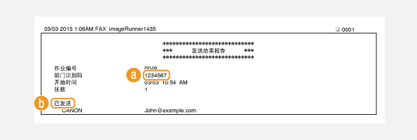 电子邮件/文件的发送结果报告(仅适用于 imageRUNNER 1435iF)