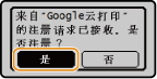 也可以从移动设备或 Google Chrome*注册本机。本机的显示屏在完成注册前会显示如下确认画面。按 <是> 完成注册。
