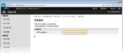 单击 [用于注册的URL:] 中显示的 URL 链接。