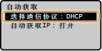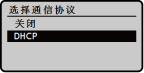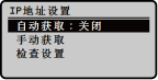 如果不想使用 DHCP 分配 IP 地址 选择 <关闭>。如果选择 <DHCP>,而 DHCP 服务不可用时,本机将搜索网络中是否提供服务,并将出现不必要的通信。 |