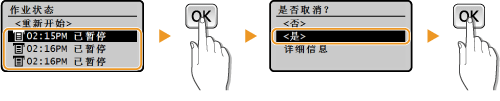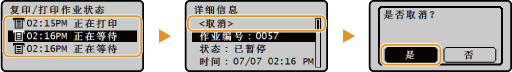 从远程用户界面取消从远程用户界面的 [作业状态] 页面可以取消打印:查看打印文档的当前状态