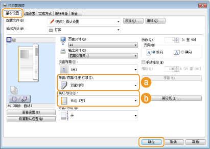在 [单面/双面/手册打印] 中选择 [单面打印] 或 [双面打印]