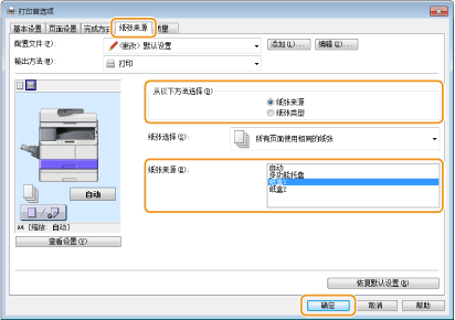 从 [纸张来源] 中选择装有要打印纸张的纸张来源