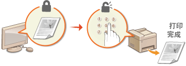 通过在从计算机打印时为文档设置 PIN,文档将保存在本机存储器中,直到在本机的操作面板上输入正确的 PIN 时才会打印。此功能称为“安全打印”,由 PIN 保护的文档则称为“加密文档”。使用安全打印,可以避免机密文档处于无人处理的情况。使用此功能前,需要完成一些步骤。