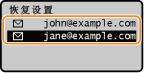 您可以从最近使用的三个接收方中选择一个接收方。当指定先前使用过的接收方时,本机也可以设置与上次发送文档到该接收方时所使用的相同扫描设置,例如浓度等。