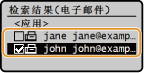 如果您的办公室已经安装了 LDAP 服务器,则可以使用服务器中已注册的接收方。若要指定接收方,请通过本机访问 LDAP 服务器,然后搜索接收方。