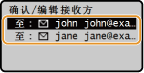 选择 <确认/编辑接收方>,然后按