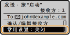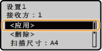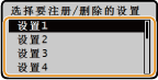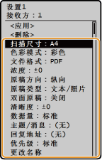 <常用设置> <编辑/删除> 选择设置 编辑设置 <应用> <是> 。不能通过此步骤更改在设置中注册的接收方。请使用所需的接收方注册新的设置。如果想要删除某个注册的设置,按