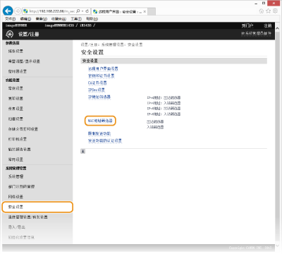 检查是否有输入错误 如果错误输入 MAC 地址,则可能无法从远程用户界面访问本机,此时需要将 <MAC地址筛选器> 设置为 <关闭>。MAC地址筛选器