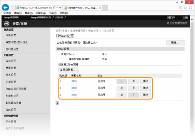 若要启用 ESP 认证,请对哈希算法选择 [SHA1]。如果想要禁用 ESP 认证,请选择 [不使用]。