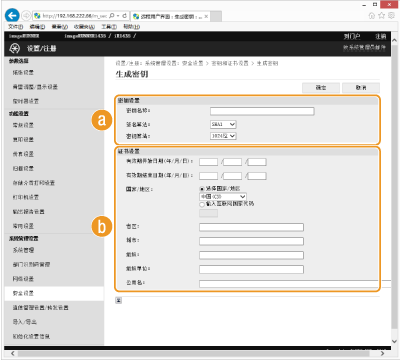 通过传输层安全(TLS)加密通信需要密钥对时,可以使用本机生成。通过“远程用户界面”访问本机时,可以使用 TLS。最多可以将五个密钥对注册到本机。