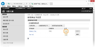 [密钥和证书设置](密钥对)或 [CA证书设置](CA 证书)。