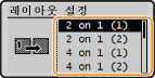 <2 on 1>/<4 on 1>을 사용하면 복사 배율이 자동으로 줄어듭니다(화면에 복사 배율이 표시됨).