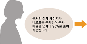 복사 배율을 95%로 변경하고 기본 설정으로 등록합니다. 그러면 복사 배율을 변경하지 않고 복사할 수 있습니다.기본 복사 설정 변경