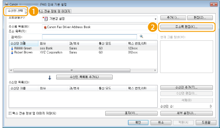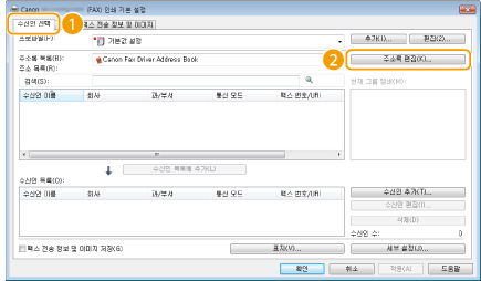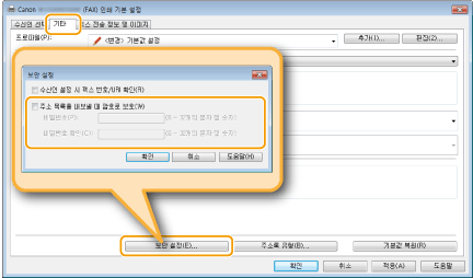 [내보내기]를 눌렀을 때 비밀번호를 입력하라는 대화 상자가 표시되면 [기타] 탭의 [보안 설정]에서 [주소 목록을 내보낼 때 암호로 보호]가 선택됩니다. 주소록 데이터에 액세스하려면 비밀번호를 입력합니다. 자세한 내용을 보려면 팩스 드라이버 화면에서 [도움말]을 클릭하십시오.
