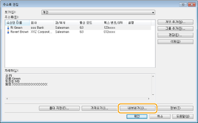 [주소록 편집] 대화 상자에서 [내보내기]를 클릭합니다.