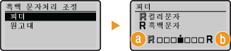 컬러 문서를 스캔할 때 검은색 또는 검은색 계열의 텍스트를 원본 문서에 가깝게 조정하거나 검은색 텍스트의 선명도를 읽기 쉽도록 조정할 수 있습니다. 또한 피더와 원고대에 대한 설정을 별도로 지정할 수도 있습니다.