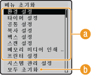 초기화하려는 설정을 선택합니다.