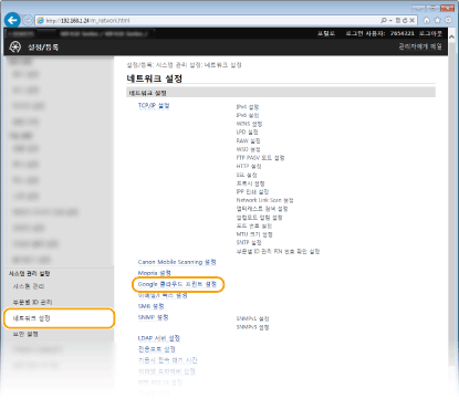 [Google 클라우드 프린트 설정]을 클릭합니다.