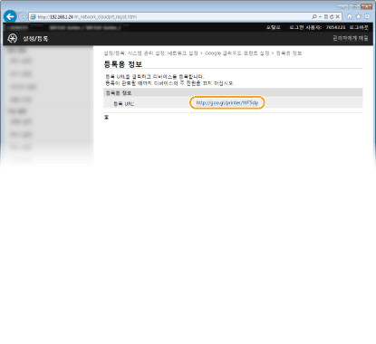 [등록 URL:]에 대해 표시되는 URL의 링크를 클릭합니다.