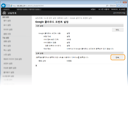 Google Cloud Print를 활성화해야 합니다. [편집...]을 클릭하고 [Google 클라우드 인쇄 사용] 확인란을 선택하고 [확인]을 클릭합니다.