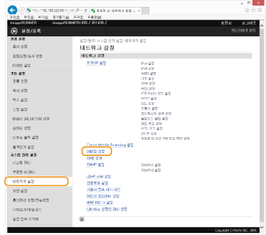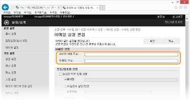 리모트 UI를 사용하여 SMTP 서버 정보 및 TLS 암호 등 이메일 설정을 구성합니다. 필요한 설정에 대한 자세한 내용은 인터넷 서비스 제공업체나 네트워크 관리자에게 문의하십시오.
